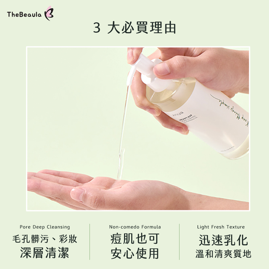 ✔ 溫和油狀質地,清爽不黏膩